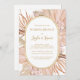 This boho tropical botanical | wedding brunch invitation is perfect for your elegant rustic floral, green, peach, rose gold wedding. Design features a gold frame or bouquet with modern blush pink pampas grass, simple sage, ivory, champagne palm leaf, and classic beach greenery. The flowers may include pink rose and orchid. The design is ideal for a classy vintage terracotta, beige, rust, winter, spring, fall wedding. Please find other matching or coordinating wedding stationery in the rest of the collection suite.
