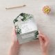 AVAILABLE WITH OR WITHOUT DINNER OPTIONS. ALSO AVAILABLE WITH A QR CODE IN THE RSVP AREA. This design features beautiful, lush tropic greenery and white florals on a soft green watercolor background. Perfect for the destination or beach wedding. Created by Simply Farmhouse Press.