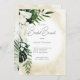 This design features beautiful, lush tropic greenery and white florals on a soft sand yellow watercolor background. Perfect for the destination or beach wedding shower. Created by Simply Farmhouse Press.