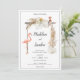Boho Tropical wedding invitation features wedding arch adorned with tropical flowers, pampas, dried grass, pink flamingo, and exotic bird. Perfect for tropical destination weddings, zoo weddings and summer weddings.