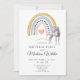 A magical boho style unicorn and watercolor rainbow birthday invitation with ethereal rose gold glitter clouds on the back of the invitation. Customise for your child's magical birthday party celebration.