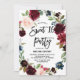 Celebrate the bride to be with this beautiful sweet sixteen invitation featuring watercolor illustrations of burgundy, blush and blue floral wreath with foliage accents. This floral baby shower invitation is perfect for autumn and boho theme events. The back of the invitation features burgundy background with a floral garland and two customisable text lines for additional wording. Matching items are available.