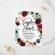 Boho Watercolor Autumn Wreath Couples Shower Invitation Postcard | Invite family and friends to your couples shower with this customisable invitation. This floral invitation features watercolor illustrations of blush, navy blue and burgundy flowers and foliage wreath. This botanical invitation is perfect for autumn and outdoor events.