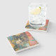 The coasters are gorgeous, a quality feel and heavy weight. They look like a precious archeological find. A rustic stone juxtaposed with a modern floral black and white print. I like the way the print goes slightly imperfect on the cut stone edges giving them a kind-of natural beauty.