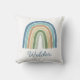 Boho Watercolor Rainbow Name Modern Blue Cushion