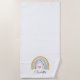 Cute watercolor boho rainbow beach towel personalised with your name. Girl's beach towel.