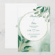 Announce your wedding with the serene, artistic beauty of this boho rustic invitation. The design is immediately striking, featuring a background dominated by lush, watercolor washes in various shades of sage green, mint, and moss, creating an abstract, organic landscape. A central, elegant double-lined faux gold circular frame provides a clean, modern focal point for your text, instantly elevating the design with a sophisticated shimmer. The frame is accented by watercolor greenery—deep emerald leaves and lighter olive branches with subtle berries—that gracefully cross into the frame, softening its geometric edge. Fine lines of faux gold texture are delicately woven into the green washes, adding a hint of sparkle and luxury. This modern bohemian style is perfect for couples hosting an elegant garden wedding, a rustic outdoor ceremony, or any event that embraces an earthy, natural, and artistic aesthetic. This design is perfect for bohemian wedding invitations, rustic bridal shower announcements, elegant engagement party invites, or sophisticated spring party stationery. This beautiful design can also be easily adapted for use as corporate event announcements, milestone birthday party invitations, or elegant menu cards for any catered affair.