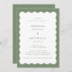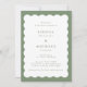 Boho Wavy Border Green & White Wedding Invitation