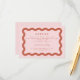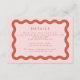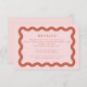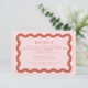 A trendy wedding details enclosure featuring a wavy scallop frame in terracotta with a blush pink background. Text is in terracotta