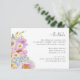 Boho Wedding Details Enclosure Card. Share important wedding day info in style with this bold and beautiful horizontal details card, perfect for spring, summer, or whimsical fall celebrations. A vibrant side bouquet of watercolor florals—including blush and fuchsia peonies, golden yellow and orange accents, lavender purple roses, blue delphinium, cheerful daisies, wildflowers, and a delicate butterfly—brings joyful colour to your details. The back features a coordinating floral pattern, creating a cohesive and polished look. Elevate your invitation suite with a design that’s as practical as it is stunning—bring your details to life with a personal touch.