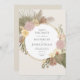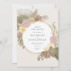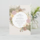 This modern wedding save the date invitation has bohemian inspired watercolor features, including rustic pampas grass, orchids, palm leaves, anthurium and protea flowers and a simulated gold frame around the circle. The beige background behind the circle can be changed, or deleted if you want white. The copy is editable and the font can be changed. The card has a coloured background, a little darker than the front. You can change the back colour.