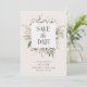 Boho Wedding Save the Date. Chic and modern, this stylish wedding Save the Date features beautiful hand-painted watercolor tropical cream and ivory flowers, tan pampas grass with sage green palm leaves arranged as a trendy wreath. The background is beige and the text is black. The back of the invite includes a beautiful pattern that can easily be deleted if you prefer. Find matching items in the Tropical Boho Wedding Collection.