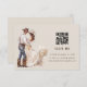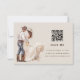 Complete your Western-themed wedding suite with this rustic ranch-style RSVP card. Featuring a romantic watercolor illustration of a cowboy and cowgirl in wedding attire, along with a convenient QR code for guests to RSVP or access your wedding website, this card is both stylish and practical. Perfect for country, barn, or ranch weddings, it beautifully complements rustic and Western-inspired stationery. Fully customisable, you can personalise the text and QR code to match your wedding details seamlessly.