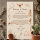 Welcome your guests with rustic charm and heartfelt gratitude using this Boho Western-inspired wedding note. Featuring earthy tones, and cowboy boots or hats for that perfect country touch, this beautifully designed card combines desert boho elegance with western flair.