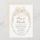 Pearl Ivory Bow Wedding Invitation, Boho White Ivory Coquette Roses Wedding Invite, Elegant Floral Pampas Beige Wedding Invitation