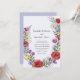 You will love this original watercolor artwork created for you special day. It features palms and ferns and pretty wild flowers in red, purple, yellow, green and blue arranged in a wreath formation on a pale lilac background. On the reverse is space for your wedding details and rsvp. Easy to customise with your own information.