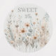 This simple and elegant design features boho wildflowers in pale pink, blush, blue and greys.
