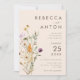 Boho Wildflower 3 Photo Collage QR Code Wedding Invitation