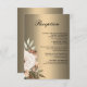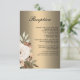 This elegant gold wedding reception enclosure card is the perfect way to provide your guests with all the important details about your big day. The card features a beautiful boho bunch of wildflowers, which is hand-painted in natural, organic shades of cream, brown, greens and white. The flowers are arranged in a loose, carefree style that is perfect for a boho wedding. The background is a deep, metallic gold that adds a touch of glamour and romance to the design.