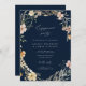 Our engagement invitation card features fancy modern calligraphy and a boho wildflower wreath - perfect for inviting guests to your engagement party celebration.