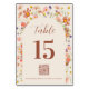 Boho Fall rustic Wildflower arch terracotta script and beige background wedding table number card featuring original watercolor floral artwork by Catherine Sweetman, perfect for a bohemian or rustic autumn wedding. Each card includes a QR code for guests to easily upload photos and videos to your wedding website, making it both stylish and functional. This design showcases hand-painted wildflowers in a rich, earthy colour palette of burnt orange, terracotta, peach, orange, plum, coral, soft pink, and golden yellow ideal for fall, late summer, or spring celebrations. The whimsical florals and burnt orange modern elegant typography on a bohemian beige background add a romantic touch to your wedding reception, helping guests find their seats in style. Fully customisable to match your wedding décor, these table numbers make a beautiful and functional addition to your boho wedding tablescape. Great for outdoor weddings, garden receptions, or nature-inspired events.