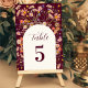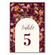 Boho Wildflower Floral Fall Burgundy Wedding Table Number