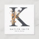 Boho Wildflower Initial K QR Code Square Business Card