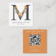 Boho Wildflower Initial M QR Code Square Business Card
