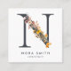 Boho Wildflower Initial N QR Code Square Business Card