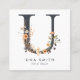 Boho Wildflower Initial U QR Code Square Business Card