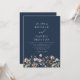 Boho Wildflower Navy Blue QR Code Wedding Invitation