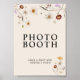 Photo Booth sign are chraacterised by a boho style with floral artwork and neutral earthy and beige colours.
