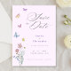 Celebrate your wildflower butterfly wedding with a Save the Date card that blends boho charm with modern elegance. Featuring watercolor florals in shades of purple and lilac, this design exudes rustic botanical beauty. With the simple yet striking script, it sets the tone for a day of love and joy.