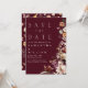 Boho Wildflower Rustic Burgundy Save The Date Invitation