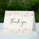 Boho light cream baby shower thank you card featuring delicate watercolors of wildflowers and "thank you" in a chic script. Personalise your thank you message on the inside and add your names in a signature-like script, or leave blank for a handwritten note.