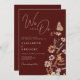 Celebrate your enduring love with this romantic boho vow renewal invitation. Designed with warm earthy tones, watercolor wildflowers, and a charming butterfly accent, this “We Still Do” card beautifully blends rustic elegance with sentimental flair. The deep burgundy background adds richness and warmth, perfect for fall celebrations or cosy anniversary gatherings.. Bohemian burgundy background Wildflower We Still Do fall Vow Renewal Invitation with a beautiful butterfly and burgundy, terracotta, cream wild flower florals and scripted words "we do". Beautiful meadow floral anniversary invitations for couples who want to renew their vows, ideal for fall and autumn vow renewals.