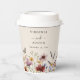 Celebrate your special day with our Boho Wildflower Wedding Paper Cups, personalised with the bride and groom's names. These charming cups feature a beautiful pattern of rustic dried grasses, delicate leaves, and vintage wildflowers in warm shades of tan, brown, rust, terracotta, and burnt orange. Perfect for adding a personal and bohemian touch to your wedding festivities, these cups blend practicality with elegant design, making your event memorable for all your guests.