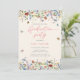 This is a delicate and whimsical graduation party invitation. The design features a colourful and bohemian field of wildflower florals in pretty shades of blue, terracotta, pink, purple and yellow. The butterflies and bees add the finishing botanical elegant touch. There is also a photo on the back with additional personalisation details.