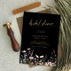 Make a statement with this striking Boho Wildflowers Pop! Black Bridal Shower Invitation. Our whimsical watercolor wildflowers truly pop against the dramatic black background, creating a unique and unforgettable invitation. Personalizable gold script lettering adds a touch of elegance (bride's name can be added!).
