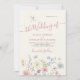 Elegant rustic boho botanical wildflower meadow making a chic spring summer garden wedding invitation with a trendy handwritten calligraphy script and pastel pink and yellow champagne ivory cream colour palette.