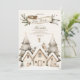 A charming winter baby shower invitation featuring hand-painted cosy cottages nestled among snowy fir trees, topped with festive gold stars. A rustic wood banner and delicate pinecone accents bring a warm, woodland Christmas feel. Neutral taupe tones blend with soft ivory snow, perfect for a gender-neutral celebration in a magical winter wonderland.