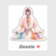 Experience the harmony and serenity of the Boho lifestyle with our unique sticker, which is a meditative woman in artistic watercolor technology. The illustration shows a woman from behind who's sitting on the floor, who's sunk into deep meditation. Her hair is decorated with beautiful flowers and delicate hair ornaments, which underscores her natural beauty and attachment to nature. She wears a flowing Boho-style dress, which charms with its lightness and playful patterns. The color range of this design includes soft lilac, turquoise, pink and orange tones that blend harmoniously and create a soothing, aesthetic effect. This exquisite design is available as stickers and is perfect for decorating notebooks, laptops, water bottles and much more. Bring a touch of Boho-Chic into your everyday life and be inspired by the tranquility of this artwork. Each sticker is made with a love for detail and an eye for quality, so you will enjoy your new favorite piece for a long time. Immerse yourself in the world of Boho aesthetics and let yourself be enchanted by the peaceful atmosphere of this meditative design.