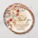 2026 trending boho wood slice thank you card with circular couple photo framed in distressed wood texture. Surrounding florals: terracotta roses, eucalyptus, pampas in earthy muted tones for organic luxury. Personalise heartfelt message + names – perfect for post-wedding gratitude. Flat 4x6" cards + envelopes, eco-friendly keepsake that matches your invitation suite!