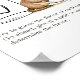 My thoughts on this product was excellent. Well printed in a gloss finishing and just the size l ordered. It arrived in good condition and am overall satisfied with the product. The printing turned out great. I was quite surprised with the finishing touch to the poster. The semi gloss was just right and a perfect size to display at the wedding.
