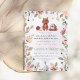 Personalise this chic snail mail baby shower invitation with your names and details today! Simply press the "Personalise" button to change the text in the template boxes or select "Click to customise further" to re-arrange and format the style and placement of the text. Featuring boho watercolor wildflower greenery and whimsical hand-drawn woodland animals. There is a short poem that reads: "Since we cannot gather today, let's shower the family from far away! Cards and gifts will show we care although we wish we could be there!". Cards reverse to a watercolor wash image. View the collection link on this page or visit our store for more designs! (c) Cali Graphics.