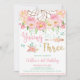 Boho Young Wild and Three 3rd Birthday Party Girl Invitation
