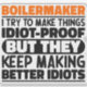 Funny Boilermaker Sayings "Boilermaker I Try To Make Things Idiot Proof But They Keep Making Better Idiots". Grab this Funny Boilermaker design as a funny gifts for an awesome mum, dad or friend.