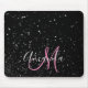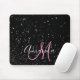 Bokeh Black Glitter Pink and White Monogram Mouse Pad
