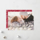 Elegant holiday photo card features a full bleed landscape-orientated photo with a bokeh light flare overlay for a festive and bubbly look. "It's a wonderful life" is overlaid in black script and block lettering, with your name(s) and the year beneath. Add two additional photos to the back, along with a custom message, on a red and cream botanical patterned background.