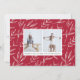 Elegant holiday photo card features a full bleed landscape-orientated photo with a bokeh light flare overlay for a festive and bubbly look. "Wonders of his love" is overlaid in cranberry red script and block lettering, with your name(s) and the year beneath. Add two additional photos to the back, along with a custom message, on a red and cream botanical patterned background.